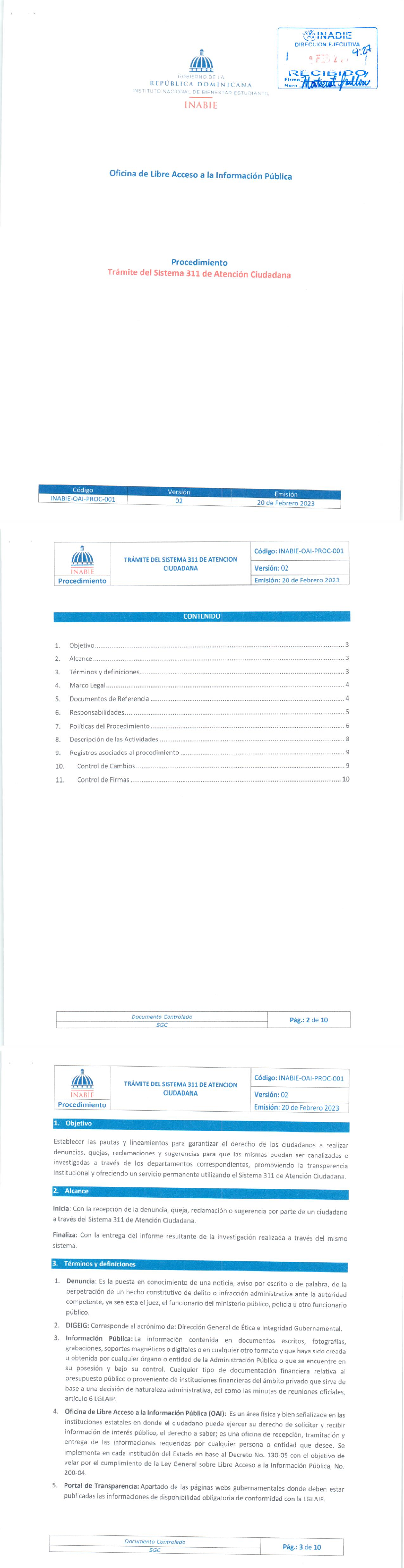 INABIE-OAI-PROC- 001 Tramite del Sistema 311 de Atencion Cuidadana